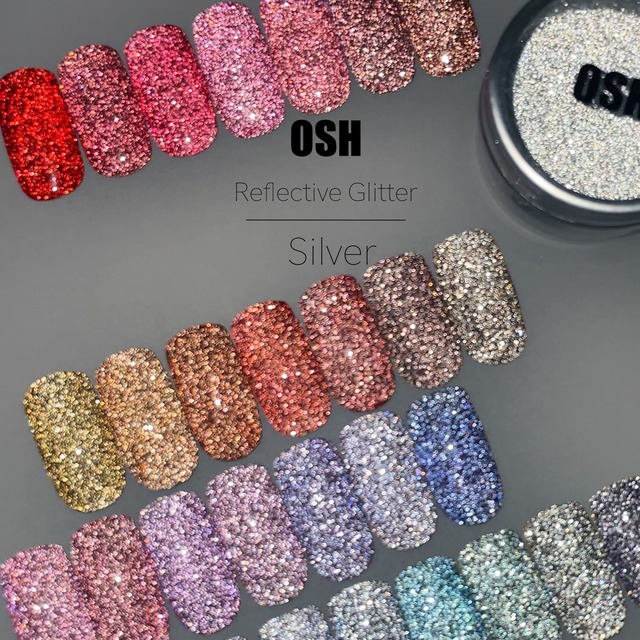 フラッシュや光に反射するグリッターです。 通常はシルバーのグリッターですが、暗い場所に差し込んだ光やカメラのフラッシュなどの光に反射して輝きます。 全ての粒子が光に反射するグリッターなので、ネイルパウダーやグリッターなど細かめの粒子のものと混ぜてのご使用もおすすめです。 ネイル全体にパウダーを塗布した後にクリア系のカラーを重ねると、お好みのカラーでフラッシュネイルをお楽しみいただけます。 ご使用するパウダーの量を変えることで、キラキラ感を調節することができます。 ジェルに混ぜたり、ジェルの上にふりかけてのご使用も可能です。 ぜひ様々なアイデアでネイルアートをお楽しみください。 ※ジェルに混ぜてご使用の際は、トップジェルやミキシングジェルを推奨いたします。 一部のメーカーのジェル(特にベースジェル)に含まれている成分がグリッターを変色させてしまう場合がございます。 【使用方法の一例】 手順①ベースジェル→硬化 手順②クリアージェルを塗布→グリッターパウダーをまんべんなくふりかけて硬化 手順③ダストブラシで余分なグリッターを払う 手順④トップコート→硬化 【内容量】 約3g ※ケースの重量は除きます。 ※パウダーのカラーや種類よって密度が異なるため、同じグラム数でも体積に差が出てしまう場合がございます。 【注意点】 ・粉塵が舞いやすいのでゆっくり開封して下さい。 ・使用する際は、マスクやゴーグル等を着用し、粉塵が目や呼吸器に入らないよう十分ご注意下さい。 ・万が一、粉塵が目や呼吸器に入ってしまった場合は、すぐに水で洗い流し、お近くの医療機関にご相談下さい。 ・使用後は、子供の手の届かない場所に保管して下さい。 ・商品画像に使用しているネイルチップは使用例ですので付属しておりません。ケース入りパウダーのみの販売となります。 ・容器に細かい傷やかすれがある場合ございます。 ・モニター環境や部屋の明るさに等より、商品画像と実際の仕上がりが異なる場合がございます。 ・クリックポストでの発送の場合は東京都からの陸送となりますので、お届け先が遠方の場合はお時間をいただく場合がございます。 ・商品の入荷ごとに入念に色味のチェックをしておりますが、入荷時期やロットによっては色味に多少の誤差が生じてしまう場合がございます。 【商品区分】 雑貨(付け爪用加工品)