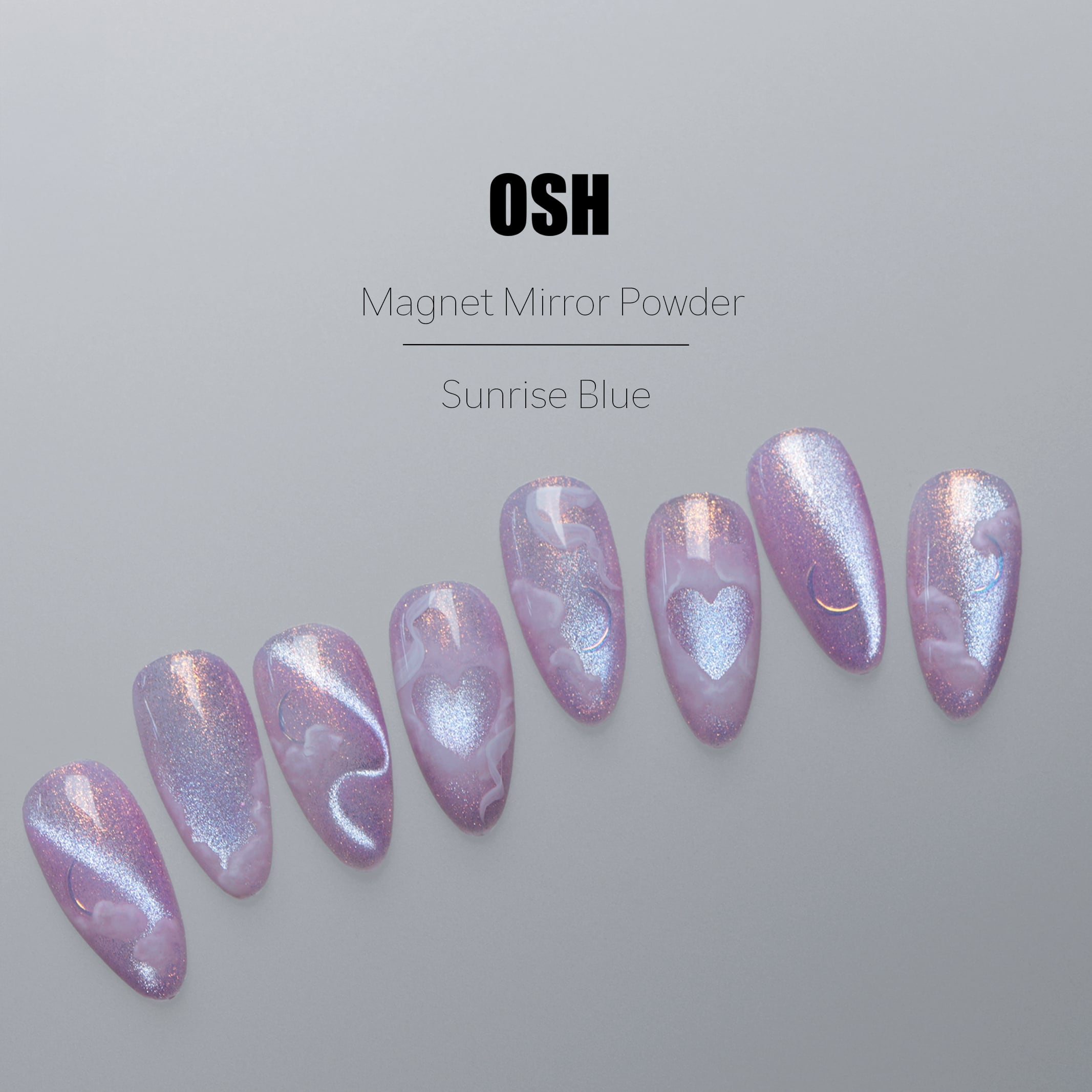 パウダーを混ぜたクリアジェルをお好みのベースカラーに乗せるのはもちろん、お好みのカラージェルに直接混ぜたり、相性やアイデア次第で様々なカラーや輝きでマグネットエフェクトを楽しむ事ができます。